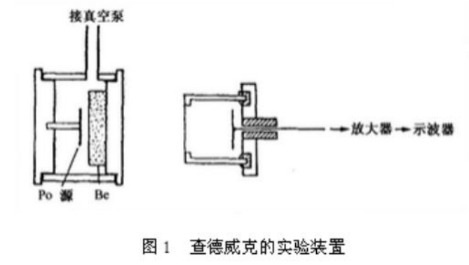 在电离室里充不同的气体,利用alpha打Be靶产生的射线去打不同的物质,根据产生的反冲能量,准确推出射线的质量为接近于质子的质量(1.008倍质子的质量),从而确定了中子的存在。