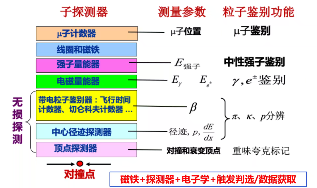 - 长寿命带电粒子:电离能损、tof、cherenkov/穿越辐射探测