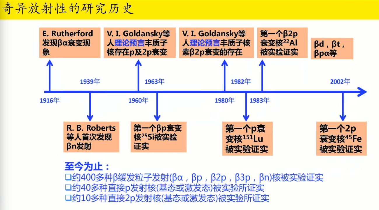 中子晕、中子皮、滴线附近新幻数 影响晕核形成的主要原因:价核子分离能及轨道角动量 轻核区有一些晕核发现 奇异现象:集团结构 奇异放射性:(双)质子、中子放射性,β缓发质子、中子放射性,重离子放射性 产生放射性核束的两种方法:PF、isol